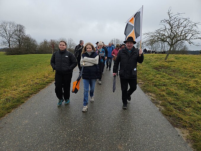 Morgens um acht Uhr trafen wir uns am Dobeltalparkplatz. Durch das Dobeltal ging es Richtung „Rappenstein“, wo man auf die restliche Wallfahrtsgemeinschaft und Weihbischof Thomas Maria Renz sowie unseren Diözesanpräses Walter Humm traf. Nach einer ersten Einstimmung zum Wallfahrtsthema „Pilger der Hoffnung!“ ging es mit einem gemeinsamen Rosenkranzgebet und Gesang weiter durch das Friedinger Tal nach Dürrenwaldstetten.