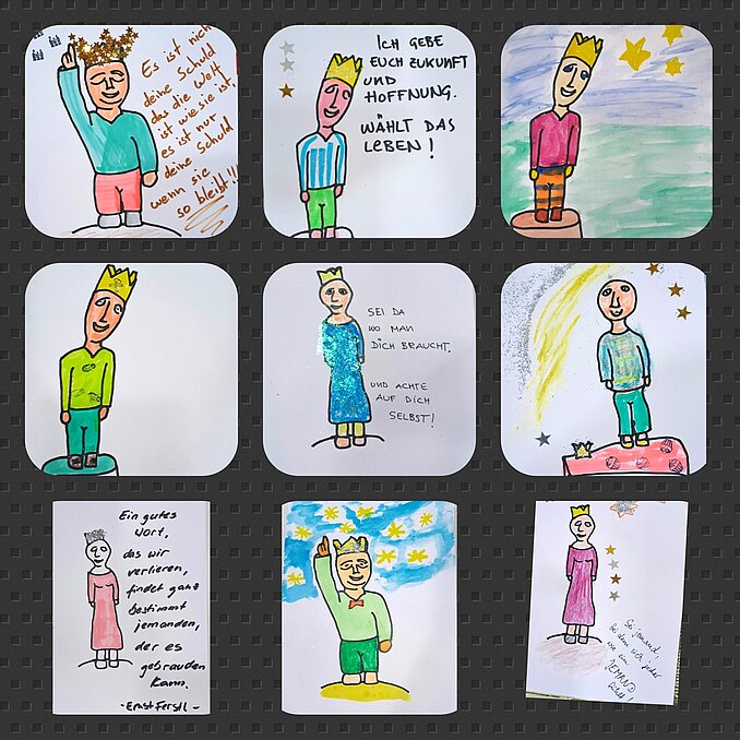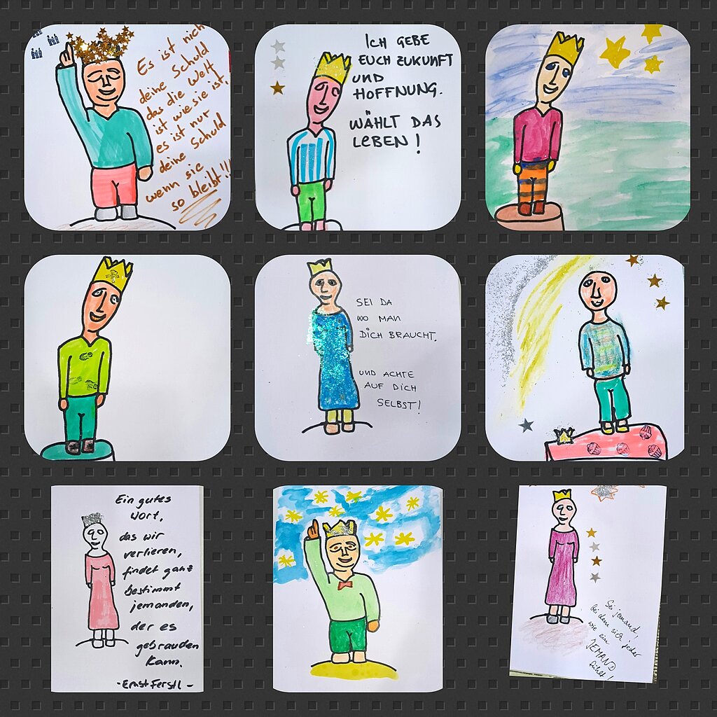 In einer zweiten Talkrunde sprachen Kolpinggeschwister über gelebte Würde in Ergenzingen. An welchen Orten ist Würde besonders zu spüren, wo ist noch Luft nach oben, was ist die eigene Aufgabe, dass gelebte Würde öffentlich erkennbar ist. Alle gemeinsam sagten, dass sie den Menschen, den sie jeweils gegenüberstehen, mit Respekt und Achtung begegnen möchten. Ein Ortschaftsrat erklärte, dass seine kommunalen Aufgaben dazu dienen, würdevolles Zusammenleben in Ergenzingen zu gewährleisten. Genannt wurde dann auch eine ganz unscheinbare Würdeszene im Treppenhaus des Zahnarztes. Menschen mit Geh- und Atembeschwerden schleppen sich mühsam nach oben ohne Sitzpausenmöglichkeit. Darauf machte jemand dann aufmerksam – und just, es steht nun ein Stuhl im Treppenhaus. Kleine Zeichen, große Wirkung. Auch das Hoffnungsbänkle ist ein niederschwelliges Angebot zum Zuhören und gehört werden. In einer kreativen Aktion konnten alle Teilnehmenden sich eine Würdekönigskarte als Aufsteller für Zuhause gestalten.