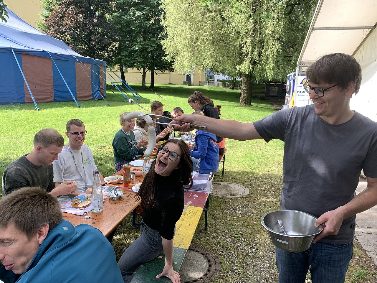 Leider musste das diesjährige JUFE, das auf dem Zeltplatz in Rot an der Rot stattfinden sollte, aufgrund der unklaren Coronalage doch ausfallen. Damit die Teamer*innen des JUFE aus den drei Kolpingjugenden Schwendi, Ochsenhausen und Mietingen – immerhin 25 an der Zahl – nicht das zweite Jahr in Folge in die Röhre gucken mussten, beschloss das Juref kurzerhand, stattdessen ein 2-tägiges Dankes-Wochenende auf dem Zeltplatz für alle fleißigen Hände zu organisieren. So kam ein tolles und fröhliches Ersatzprogramm mit Workshops, Wasserspielen, Lagerfeuer, Grillen sowie alkoholfreien Cocktails zustande. Zusätzlich konnten sich die drei Kolpingjugenden besser miteinander vernetzen und sich für das kommende Jahr einstimmen. Abgerundet wurde das Event mit einem stimmungsvollen Lagerfeuergottesdienst am Samstagabend mit Diözesanpräses Walter Humm – herzlichen Dank nochmal an alle Beteiligten!