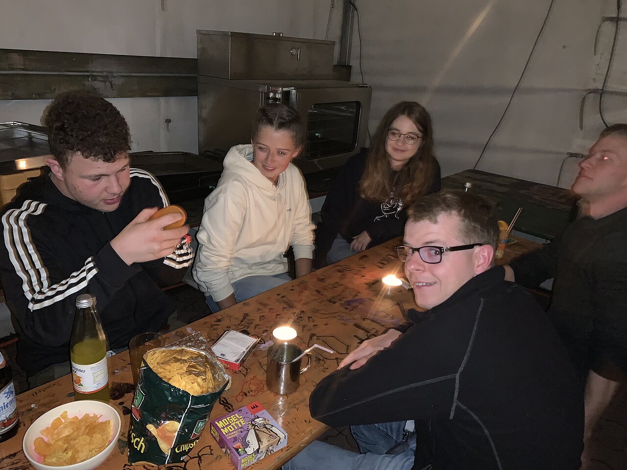 Auch einige angemeldete Kolpingjugenden wollten sich ihr JUFE-Wochenende nicht nehmen lassen und stellten jeweils ein eigenes kleines Programm zusammen. In Ergenzingen machte sich eine Gruppe auf zum Zelten. Beim gemeinsamen Kochen, Kokosnussketten-Basteln, Wikinger-Schach, im Waldseilgarten und am Lagerfeuer wurde das schöne Wetter und die Gemeinschaft genossen. Auch die Giengener Kolpingjugend nutzte das Wochenende und verbrachte Freitag und Samstag in und um die „Kapla“, das Jugendhaus der Giengener Kirchengemeinde. Zwischen dem Grillen am Freitagabend und einer Schnitzeljagd am Samstag war immer Zeit für Fußball, „Mensch ärgere dich nicht“ und Mario Kart. Somit war für jede*n etwas dabei.