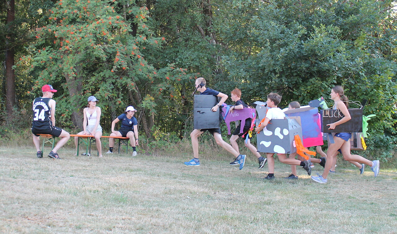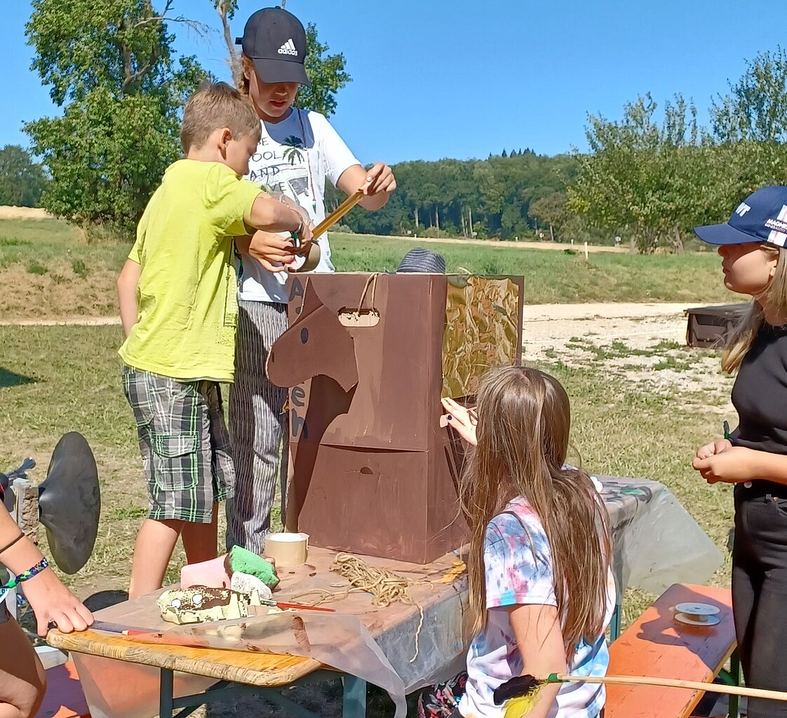 Vom Diözesanverband wurde für einen Nachmittag die Programmgestaltung übernommen. Das Highlight war ein Wildwest-Pferderennen, zu dem die Teilnehmenden sich vorher in Gruppen ihre „Pferde“ basteln sollten. Diese bestanden aus mit viel Kreativität gestalteten Umzugskartons, in die der*die Reiter*in jeweils einsteigen und dann damit einen Parcours absolvieren musste. Nach zwei aufregenden Rennen wurden die Gewinnerteams verkündet sowie das hübscheste Pferd belohnt.