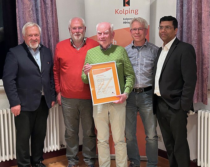 Die Berichte der Senioren 60 Plus, des Familienkreises, der laut Wolfgang Starz auf 25 Jahre Bestehen zurückblicken konnte, der Kreativgruppe um Martina Konold und der nun 15 Jahre bestehenden Strickgruppe unter der Leitung von Renate Mikusch und der Meditationsgruppe, für die Peter Kommander sprach, schlossen sich an. Vorsitzender Wolfgang Haas hob die Highlights 2025 hervor unter anderem das 175-jährige Jubiläum des Kolpingwerks in Köln und die Kleider- und Schuhsammelaktionen und die Fahrt zum Landtag mit Führung durch Tim Bückner. Bürgermeister Armin Kiemel dankte der Kolpingsfamilie für ihren Einsatz in der Gemeinde und nahm die einstimmig erfolgte Entlastung vor. Die Kassenprüfer Guido Haas und Thomas Kruger wurden in ihren Ämtern bestätigt. Ein beeindruckender Powerpoint-Bericht über das Vereinsjahr von Gotthard Bieg schloss sich an. Bei den Grußworten von Bezirksvorsitzendem Dieter Legner, Peru-Freundeskreis Pro-Espiritu Santo Vorstand Bernhard Kuhn und SAV Vorsitzendem Eddi Streicher wurde die gute Zusammenarbeit und der Einsatz der Abtsgmünder Kolpingsfamilie gelobt.